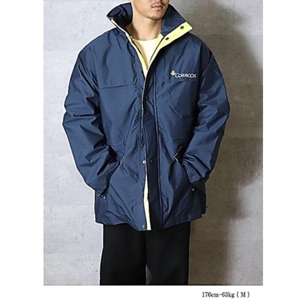 開閉部分はジッパーとスナップ釦の2重構造の比翼式で風の巻き込みを防ぎます。フロント下部に斜めに取り付けられたポケットが付き開閉が蓋つきでジッパーが付きますので中身の落下防ぎ安心です。襟にフードが収納出来ますので襟元はすっきりデザイン。本来は郵便事業者の仕事着の為、機能性に優れ野外での作業にも対応できるように、軽く、ある程度の防風、防水が施されています。ウェスト調整ができるドローコード付。背中には反射テープが付いていますので、夜間の作業もライトに反射して安全!フロントジッパー部分のイエローが全体の良いアクセントになり、CORREOSのロゴも控えめでありながら、デザインの良さから存在感があります。普段着にも十分着こなして頂けるデザインは日本にはない欧州ならではの魅力の一つです。