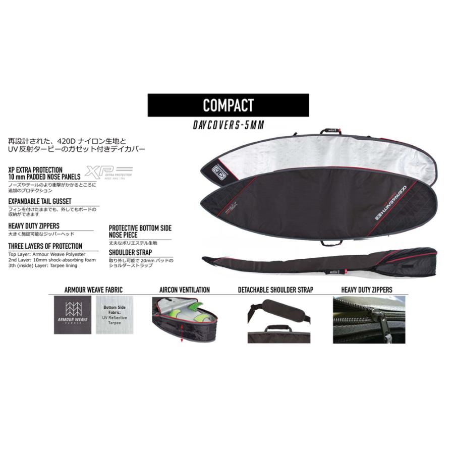 【COMPACT DAY LONGBOARD】BARRYよりも、さらに頑丈なスタイルのミドル&ロングボード用ハードケースWIDTH:610mm■ COMPACT DAY(コンパクトデイシリーズ)強力なアーマー織り生地と防水・遮熱・反UVの特殊生地を組み合わせたハードケース-XP EXTRA PROTECTION 25mm PADDED NOSE PANELSノーズやテールに25mm厚のパッドを追加-EXPANDABLE TAIL GUSSETフィンを付けたままでサーフボードを収納可能-HEAVY DUTY ZIPPERS頑強で取り扱いのしやすい大きめのジッパー-THREE LAYERS OF PROTECTIONそれぞれに役割を持たせた3層式ボードケース(1)1層目(外側):撥水加工・強化ポリエステル生地(2)2層目(芯):5mm 衝撃吸収フォーム(3)3層目(内側):遮熱・防水性能の高い生地による裏打ち-PROTECTIVE BOTTOM SIDE NOES PIECEボトムサイドをカバーする仕様-SHOULDER STRAP取り外し可能な20mmパッド入りショルダーストラップ付き