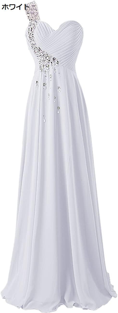 お呼ばれ 結婚式ドレス ロング丈 ワンショルダー ビジュー付き 二次会 披露宴ドレス ふんわりシフォン 袖なし 花嫁ステージドレス