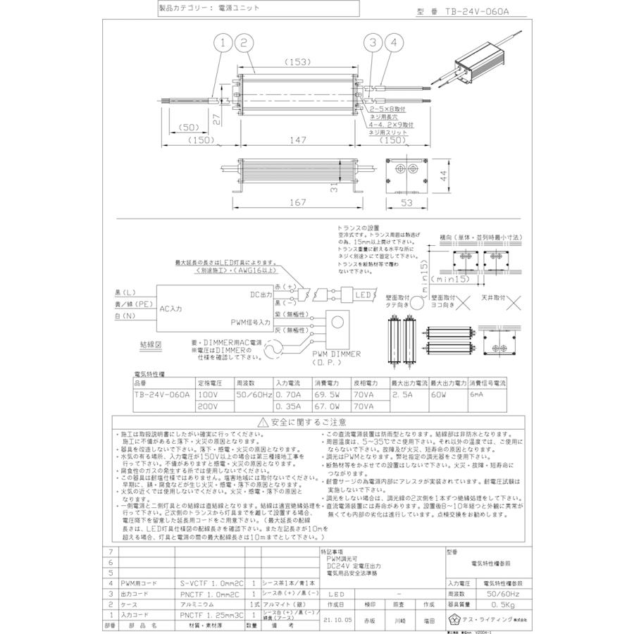 | ≪TES LIGHTING 直流電源(非調光用)≫ |