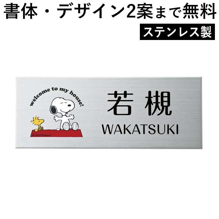表札 スヌーピーのワンポイント付きステンレス表札 ネームプレート 全国一律送料無料