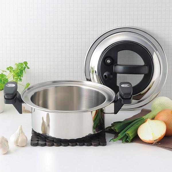 ★ やさしい圧力で調理する調圧鍋です。普通の鍋に比べて根菜類は無論、小魚の骨までスピーディーに軟らかく煮る事が出来ます。途中で蓋を開けて味見をする事も可能です。