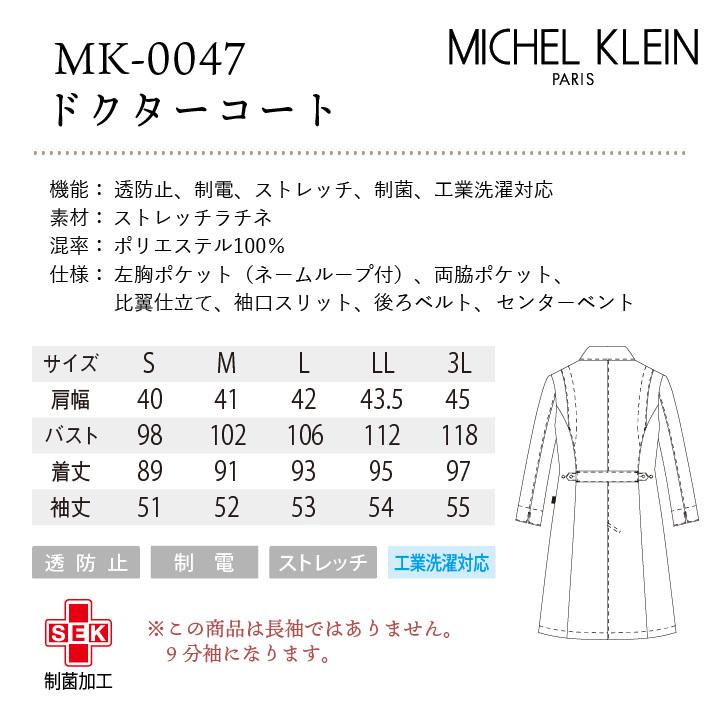 MICHEL KLEIN フランスの人気ブランド「ミッシェルクラン」 MK-0047 女性らしさを演出する、美シルエットのドクターコート 女性用"} MICHEL KLEIN(ミシェルクラン)