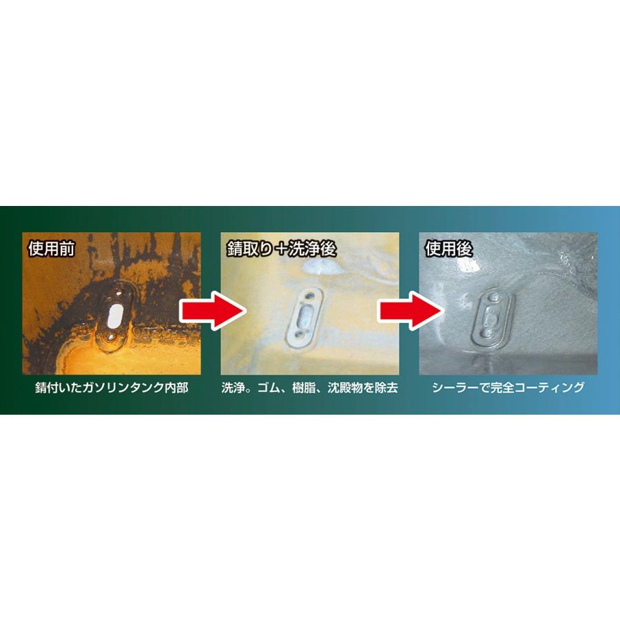 ガソリンタンク内の錆、沈殿物を一掃、アメリカのシェアNo1.を誇る錆取り剤です。