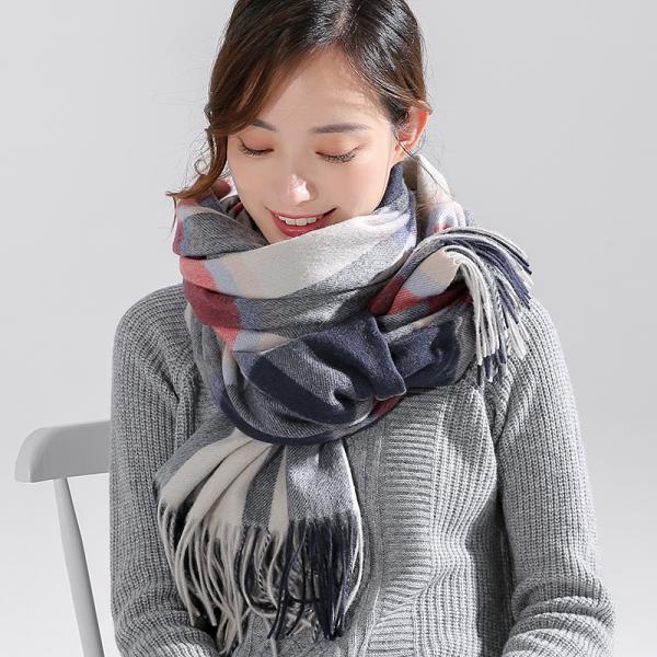 スカーフ ショール ブラジャー ロング 格子縞 ウール ショール レディース