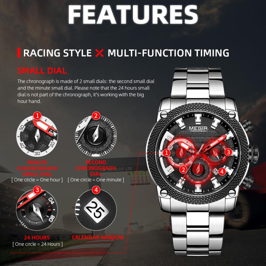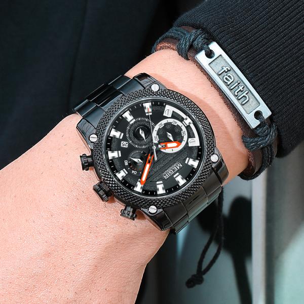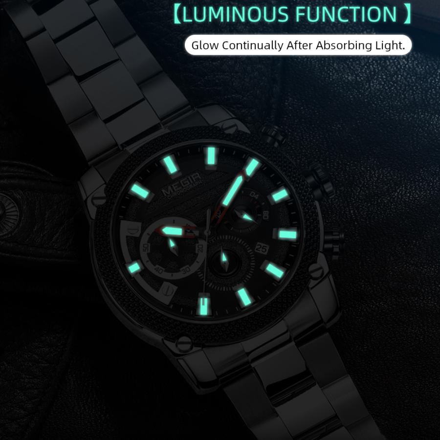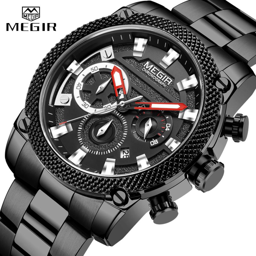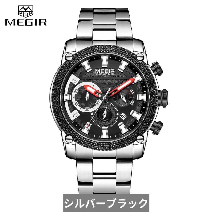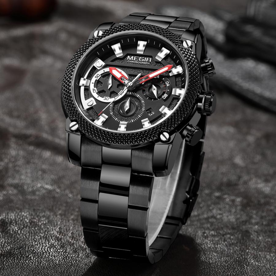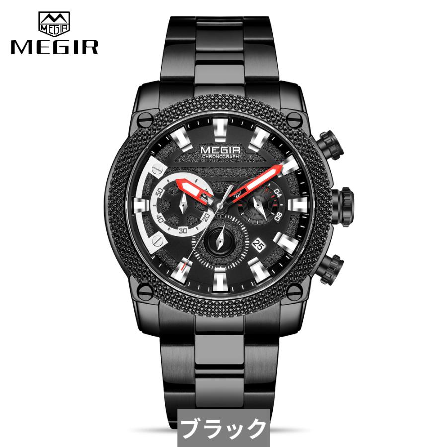 クロノグラフ 腕時計 黒 ブラック アーミー ミリタリー ステンレス クォーツ 防水 スポーツ メンズ