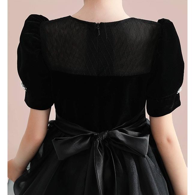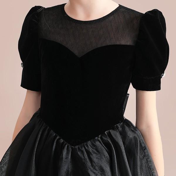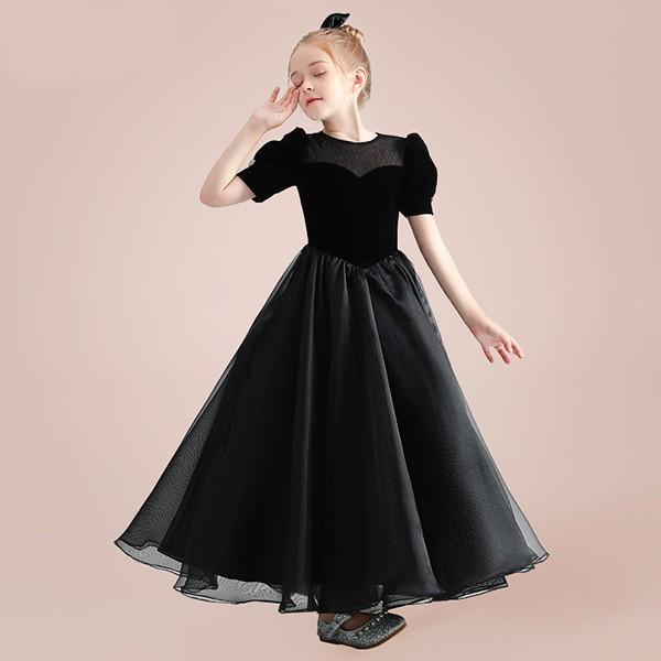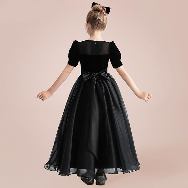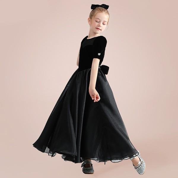 子供ドレス ロング丈 キッズドレス ピアノ 発表会 ワンピース ブラック 半袖 プリンセスドレス エレガント 子どもドレス 女の子