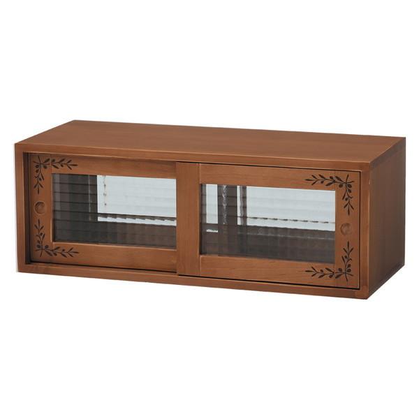 萩原 カウンター上収納 (約)幅60×奥行25×高さ22cm MUD-6026LBR 4934257205825●落ち着いたブラウン色のカウンター上収納ラック。引き戸のガラスは格子ガラスになっています。《家具 インテリア》※画像はイメージです。