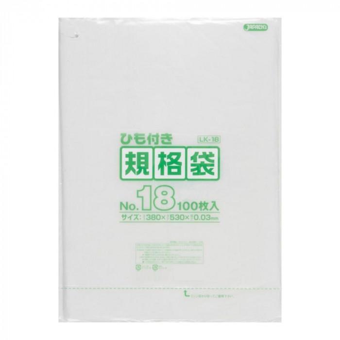 ジャパックス LD規格袋 厚み0.030mm No.18 ひも付き 透明 100枚×5冊×3箱 LK18