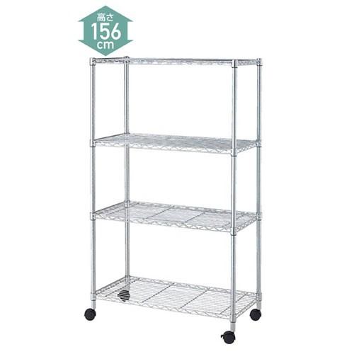 スチールラック D35cmタイプ キャスター付き H156cm 棚4段 W90.7cm 61-66-10-1