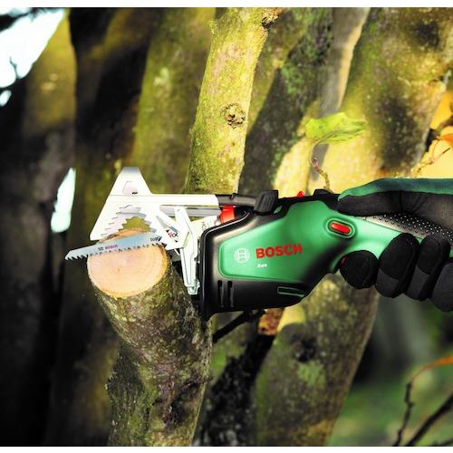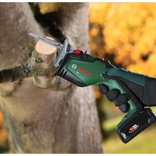 [特長]●ボッシュDIY用18Vバッテリー対応です。●ガーデニングからDIY、粗大ごみ解体まで幅広い用途に使用できます。●オートターボ機能(最初はソフトに必要に応じてパワフルに)が備わっています。●Aグリップ:枝木を固定して切断をスムーズに行え、片手でも剪定作業がラクラク(取り外し可能)です。[仕様]●切断能力(mm)木材:80●ストローク数(min[[の−1乗]]):0〜2300●ストローク(mm):20●本体寸法(mm):63×138×285●定格電圧(V):DC18V(ボッシュDIY用充電式専用バッテリー)●能力:木材80mm●ストローク数:0〜2300min-1(回/分)●ストローク幅:20mm●本体寸法:63×138×285mm[材質/仕上]●ポリアミド樹脂(PA)[セット内容/付属品]●木材用セーバーソーブレード1本(S644D)[注意]●バッテリーと充電器は別売です。