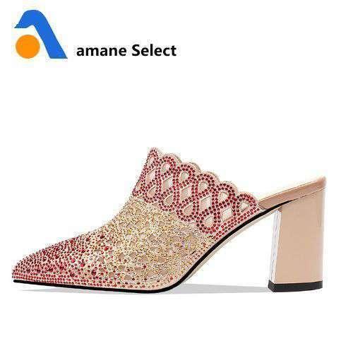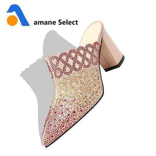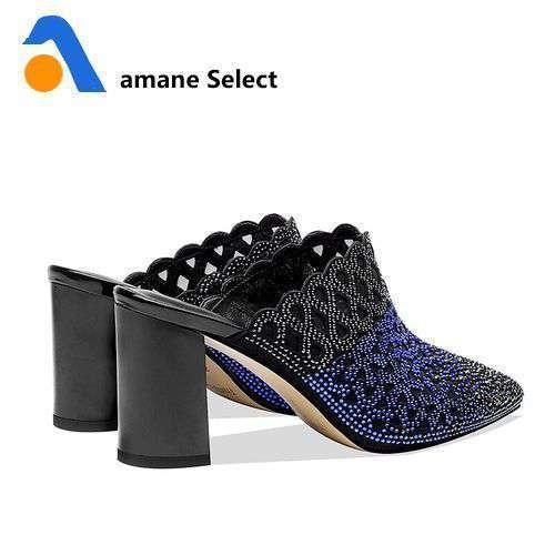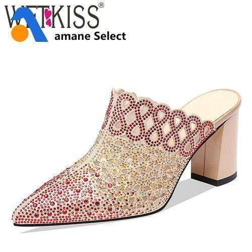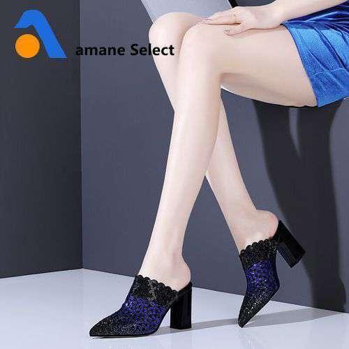 Wetkiss メッシュ サンダル ミュール ハイヒール ポインテッドトゥ ラメ スタッズ 2色より選択可能