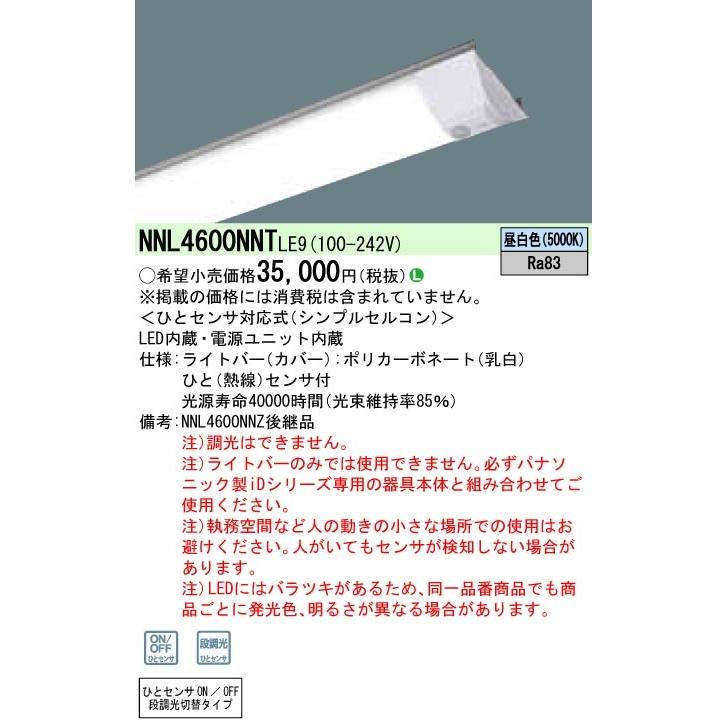 ◎NNL4600NNTLE9 一体型LEDベースライト iDシリーズ用ライトバー ひとセンサ付 40形 一般 6900lmタイプ 昼白色 非調光 Panasonic 施設照明用部材