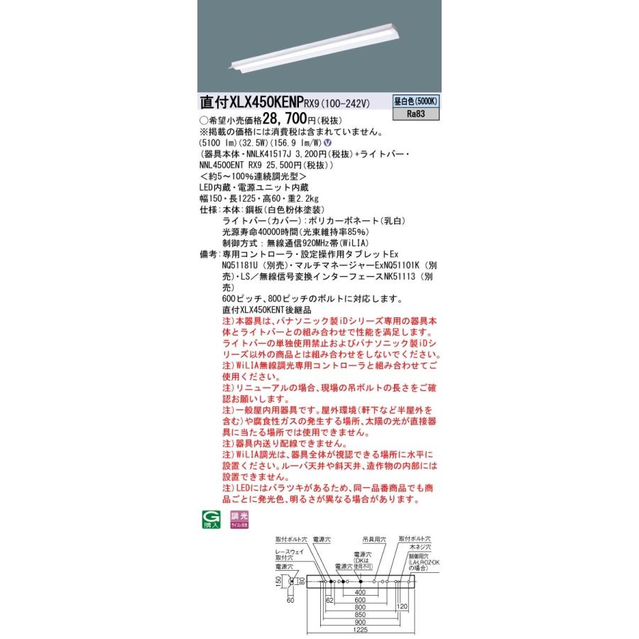 【法人様限定】パナソニック XLX450KENP RX9 LEDベースライト 40形 反射笠付型 5200 lm WiLIA無線調光 昼白色【NNLK41517J + NNL4500ENT RX9】