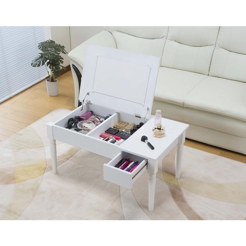 コスメテーブル 1面ドレッサー 幅80cm テーブル デスク ロータイプ コンパクト ローテーブル センターテーブル 鏡 メイク台 収納 白