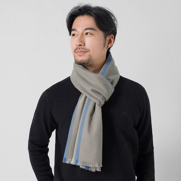 ネッカチーフ スカーフ ショール ヒツジ 灰色 グレー ひつじ ストライプ 格子縞 ウール ショール メンズ