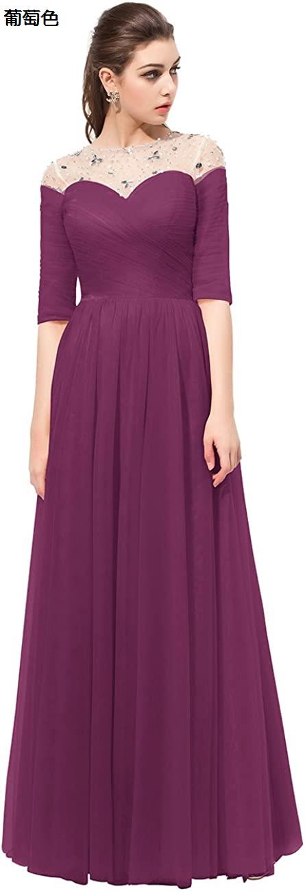 レディーズ ロング丈 お呼ばれ 結婚式ドレス フォーマルドレス ビジュー付き カラーチュチュ 袖付き 花嫁ワンピース 二次会ドレス