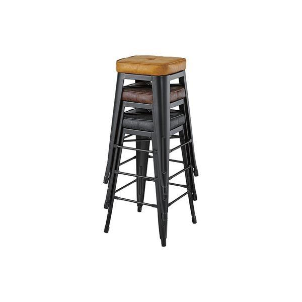 スツール オットマン 幅41×奥行41×高さ70cm ブラック スチール ソフトレザー リビング ダイニング インテリア家具【商工会会員店です】
