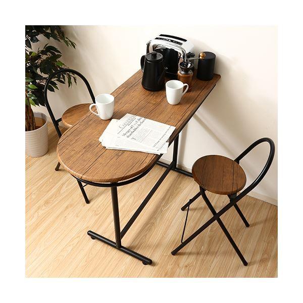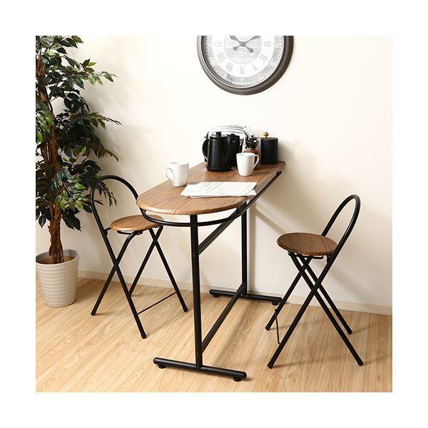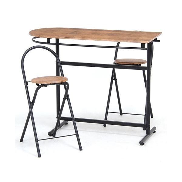 カウンターテーブル & カウンターチェアセット 3点セット 幅110cm 折りたたみ椅子×2 コンパクト スチール リビング ダイニング〔〕