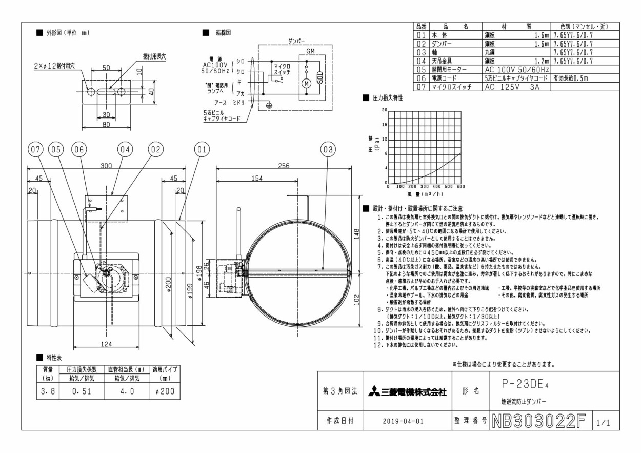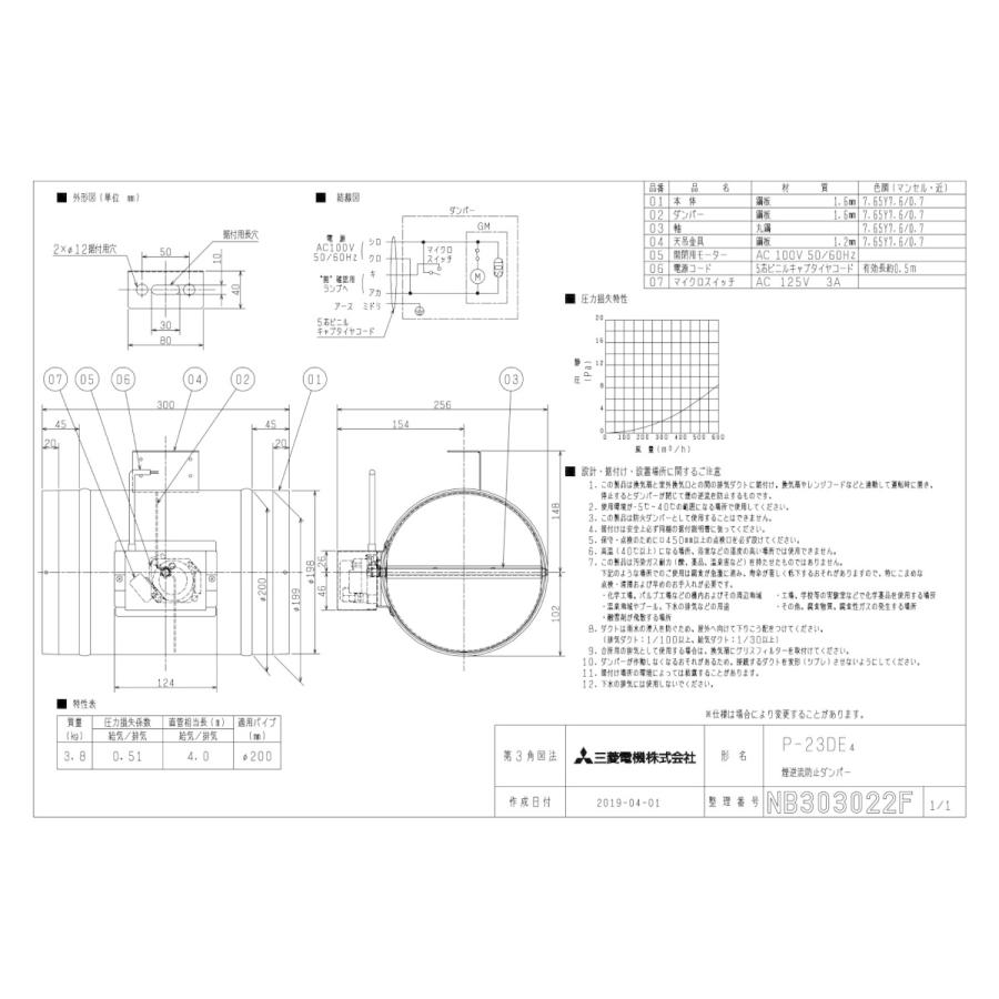 三菱電機 P-23DE4 煙逆流防止ダンパー ダクト用システム部材