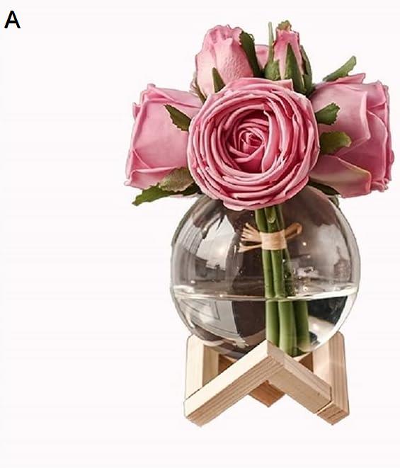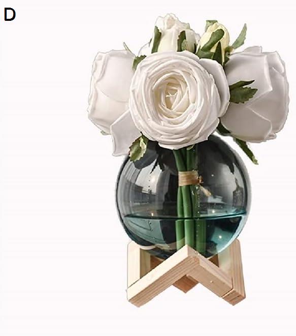 家のキッチンの結婚披露宴の装飾のための寝室のハイエンド偽の花の花束のためのガラスの花瓶の人工的なバラの花 造花 (Color : A)