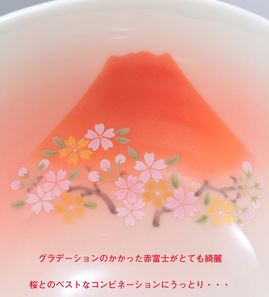 中身をそそぎ 飲んで減っていくとと赤富士が水面から顔を出したようなイメージになります