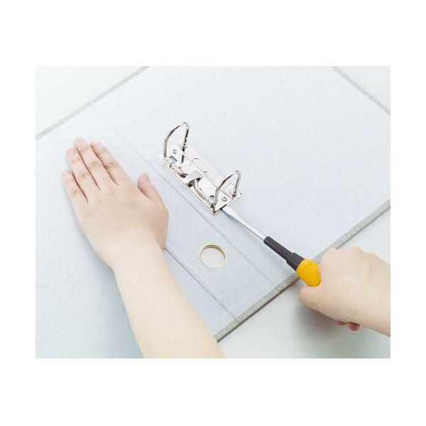 ●変形リングのとじ具と樹脂製押え具が書類をしっかり保持します。