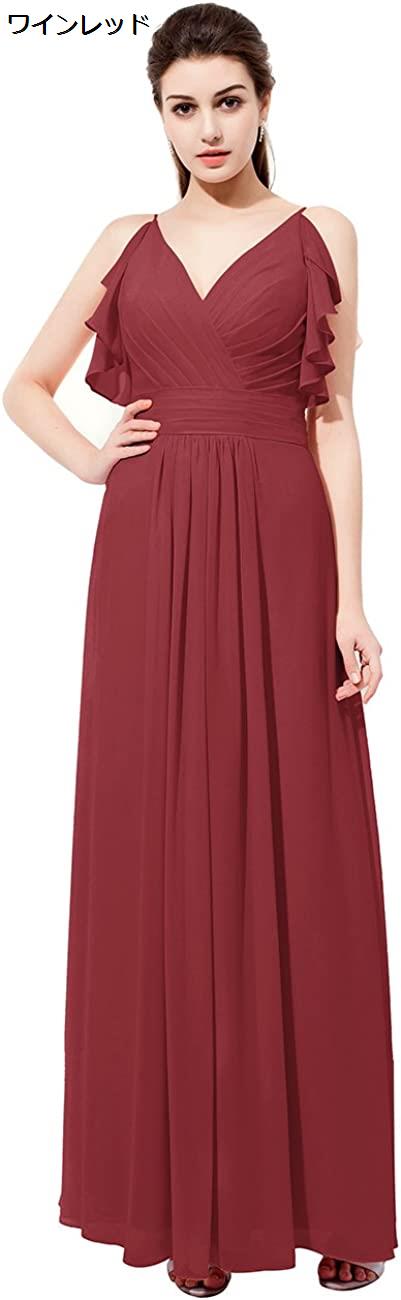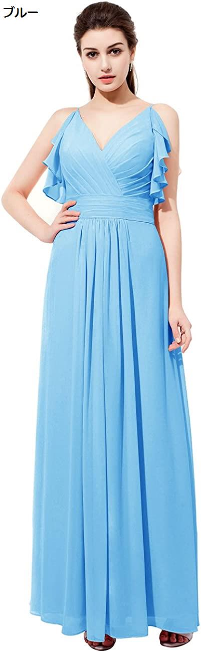 レディーズ ロング丈 ブライズメイドドレス お呼ばれ 結婚式ドレス フリル付き ふんわりシフォン ビスチェタイプ 花嫁ワンピース