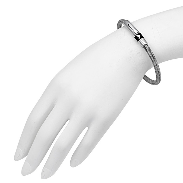 | 仕様 | ■サイズ トップ:H約0.5cm×W約3.5cm / 腕回り:約19cm 幅:約0.4cm / 開閉部:マグネット式 ■素材 ステンレススチール ■カラー シルバー/ブラック ■付属品 専用保存布袋 専用BOX ■備考 ※当社では、スタジオでストロボを使用して撮影しており、sRGB環境にて画像の補正を行っておりますが、お客様のモニターを通してご覧になって頂いている為、実物を蛍光灯や自然光の下でご覧になった場合と色味が異なる場合がありますので、ご理解の上ご購入頂きますようお願い致します。 ※付属品は仕様変更等により、若干異なることがございます。 |