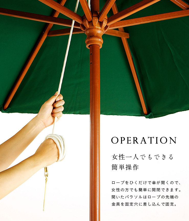 ガーデンファニチャー ガーデンパラソル パラソル ベース付き2点セット WOOD PARASOL(ウッドパラソル) 210cm 5色対応