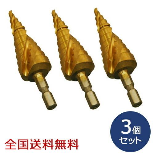 チタンコーティングスパイラルステップドリル 10段(4〜22mm) お得な3個セット