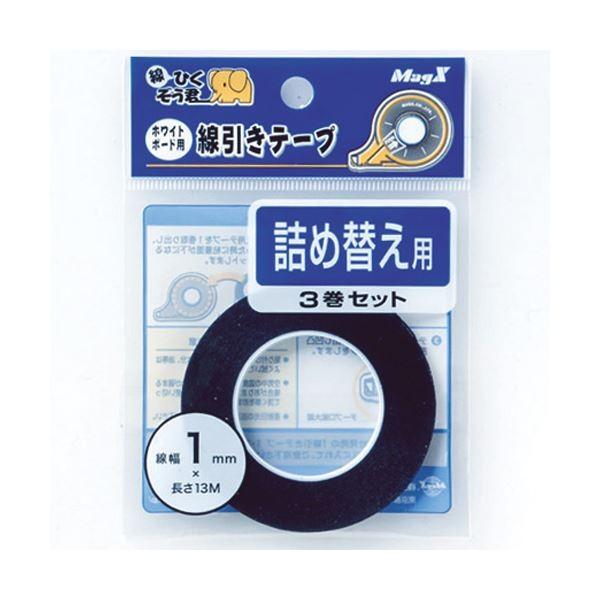 (まとめ)マグエックス ホワイトボード罫引きテープ MZ-1-3P 1mm 詰替3巻パック(×10セット)