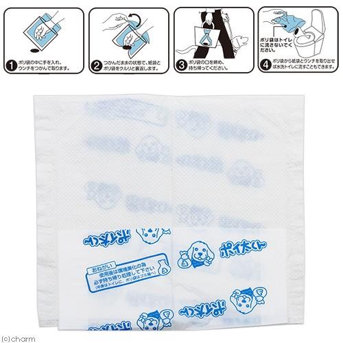| 特長 | ●愛犬のお散歩マナーに必要なウンチ処理袋です。 ●ポイ太くんとチャームのオリジナルコラボデザインのパッケージです。 ●ウンチを包んだパックはトイレにそのまま流すだけ処理できます。 ●ポリ袋は可燃ゴミとしても処理できます。 ●手を全く汚すことなくウンチを処理できる、お散歩時に必携の袋です。 |