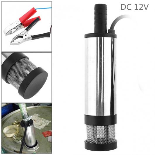 DC 12V 38mm シルバー ポータブル アルミニウム 合金 電動 耐水 ポンプ フューエル ウォーター オイル バレル ポンプ 2 アリゲーター クリップ