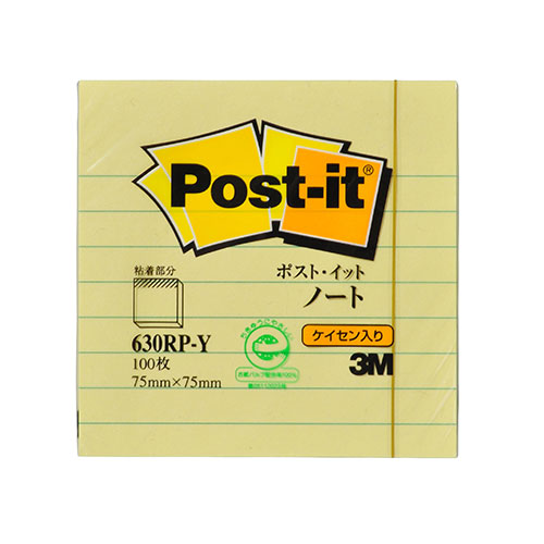 | ポストイット ラインノート再生紙 イエロー75×75 オフィスの定番、ポスト・イット(R) 通常粘着ふせん/粘着メモ。くり返し貼ったりはがしたりでき、相手をいためません。罫線や方眼などの印刷が入っているので、きれいに文字や図が書き込めます。水分散性粘着剤を使用しています。 |