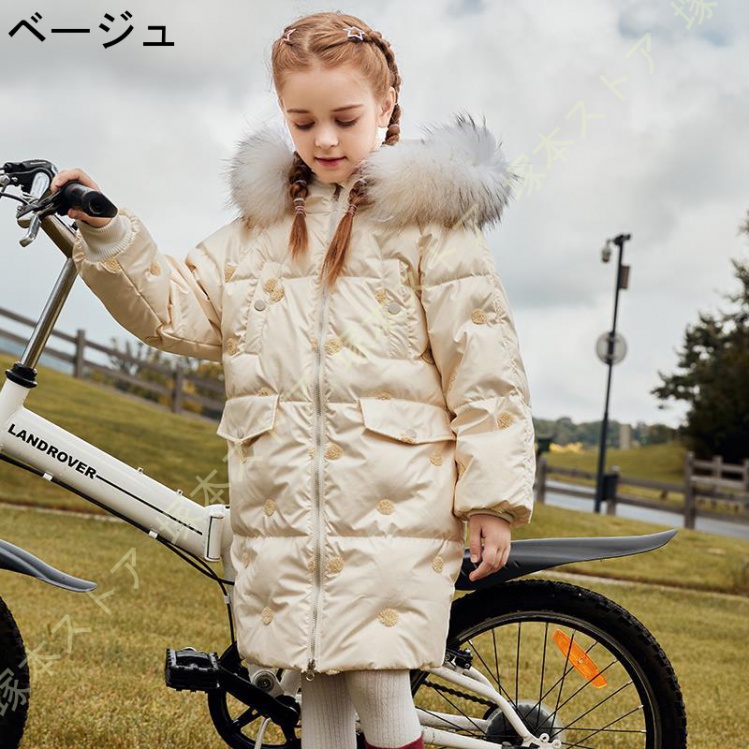 ダウンコート 子ども服 キッズ ロングアウター ダウン ファーコート付き ファー ジャケット 帽子付き 男女兼用 女児 軽量 秋 冬 暖かい ライトダウン