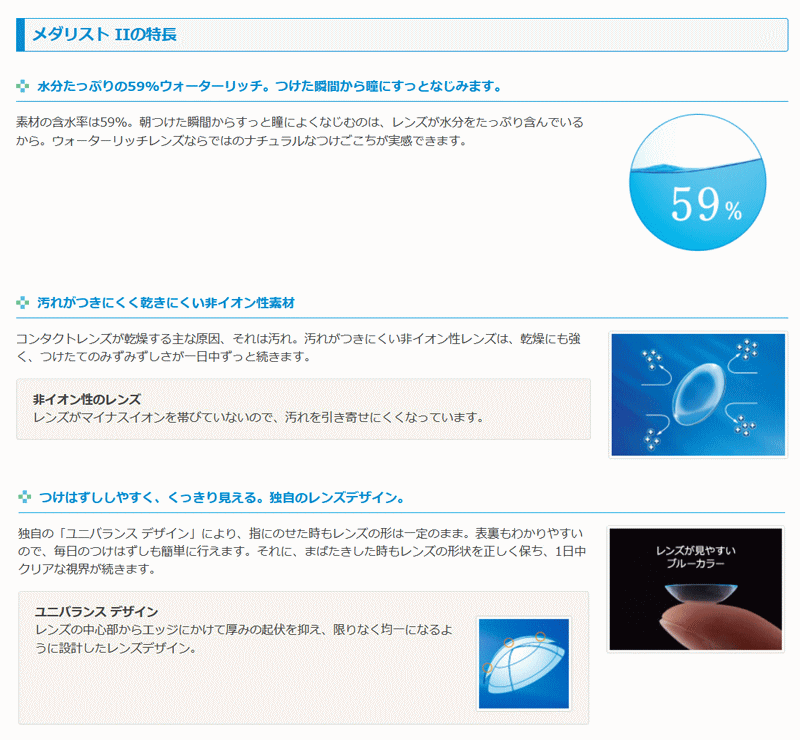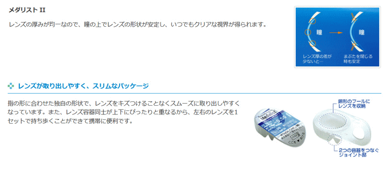 ★☆ 2週間使い捨て コンタクトレンズ商品名:メダリストII枚数:1箱6枚入りBC(ベースカーブ):8.6DIA(サイズ):14.2含水率:59%中心厚(-3.00の場合):0.14グループ分類:グループII医療機器承認番号:21600BZY00521000メーカー:ボシュロム・ジャパン広告文責:クリアコンタクト区分:高度管理医療機器※販売価格及びサービスにつきまして、予告なく変更する場合がございます。予めご了承下さい。2ウィーク メダリスト 2 MEDALIST 2WEEK medalist 2week bausch lomb クリアコンタクト Clear Contact