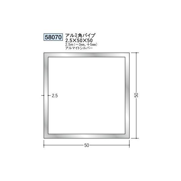 創建 アルミ角パイプ・丸パイプ アルミ角パイプ 2.5×50×50 ※2.5m(商品コード:58070)