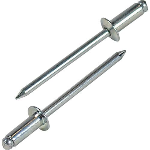 ★5000円以上で送料無料★●片側から複数の母材をワン・アクションで締結できます。溶接に比べて作業の省力化や生産性の向上にメリットがあります。●かしめ板厚(mm):9.5?12.7。●せん断荷重(N):3000。●フランジ径(mm):9.6。●リベット径(mm):4.8。●リベット長(mm):17.2。●引張荷重(N):4000。●下穴径(mm):4.9?5.0。●箱入。●箱入数(本):1000。●リベット本体(フランジ):スチール(炭素鋼)。●マンドレル(シャフト):スチール(炭素鋼)。●自動車板金、電機板金など。