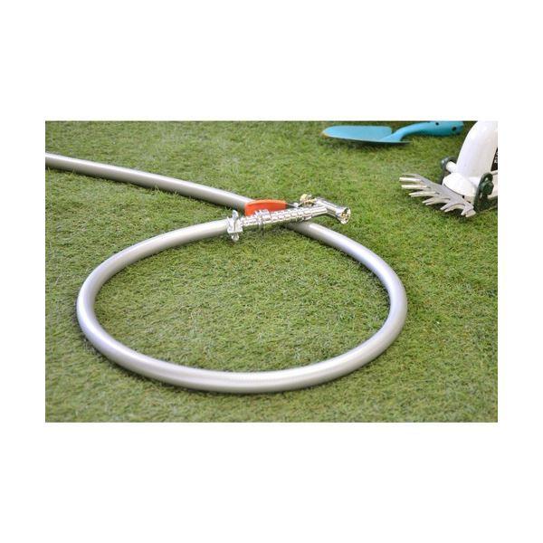 ●耐候性に優れ、屋外の使用に適している、8mの散水用ホース。色はシルバーです。