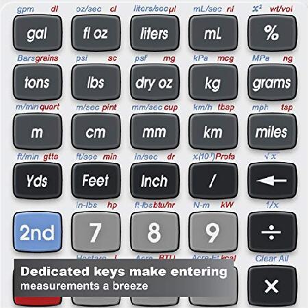 - EASILY WORK IN AND CONVERT BETWEEN measurement formats by pressing the conversion key and then the desired unit key, it is that easy and accurate. Then you can add, subtract, multiply and divide your results to get to the solution you need.