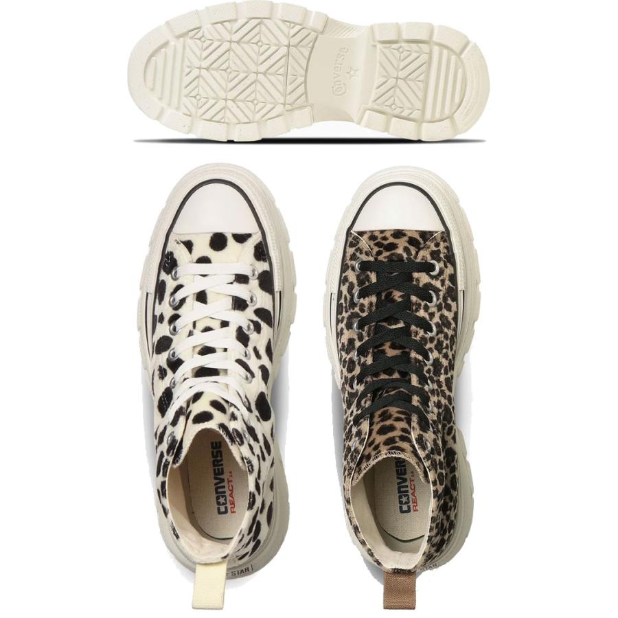 コンバース レディース 厚底 スニーカー■商品説明DALMATI(31310231)LEOPARD(31310230)「REACT(リアクト)」「RECYCLE(リサイクル)」「REFINE(リファイン)」の3つの要素を備えた、オールスターの次世代モデルALL STAR (R)(オールスター アール)のソールアレンジモデル。トレッキングシューズがモチーフのボリュームあるアウトソールを合体させたデザインに、アニマルファーのアッパーを採用。【検索用キーワード】 23.5cm 24.5cm デイリーユース タウンユース HIカット チャンキーヒール 美脚効果 脚長効果誕生日 バースデー 母の日 クリスマス プレゼント ギフト 贈り物 紐靴 普段履き街履き お出掛け エコファー フェイクファー ダルメシアン レオパード 豹柄 ヒョウ柄シロ 白系 ホワイト 茶色 茶系 ALL STAR (R) TREKWAVE ANIMALFUR HI ■素材アッパー:ポリエステル、キャンバスアウトソール:ラバー