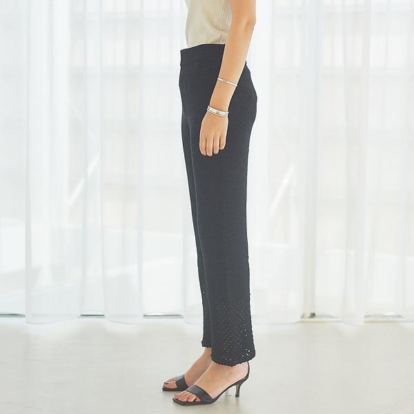 透かし編みにより、フェミニンな印象で穿けるニットパンツ。
