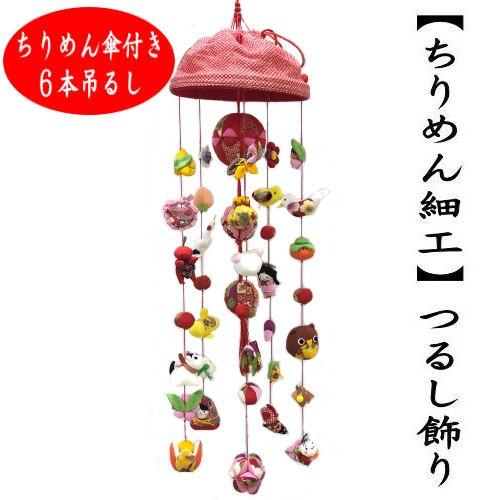 つるし飾り ちりめん細工 「ちりめん傘付き」 (一つのつるしにモチーフ7個)サイズ/寸法 長さ・約78cm 輪直径・約22cm 合う台座/約90cm用台座素材/製造 綿・化繊/日本製備考つるし飾りの販売となります。台座は別売りとなっていますのでご注意下さい。商品説明ちりめんの傘が付いたリングに、つるし飾りが6本と豪華でかわいいちりめん細工のつるし飾りです。可愛らしい手鞠やわらべ・フクロウなどがあしらっております。季節を彩る、かわいいつるし飾りは子供の健やかな成長を願い、飾られた大切な飾りです。ちりめん細工は一針一針丁寧に縫い上げ、一つずつ細かな手作りが特徴です。お子様の成長、ご家族の健康、長寿、繁栄を願う飾りは一本でも華やかですが、リングで複数飾るとより豪華で華やかになります。おひな様と一緒に飾って頂くと、より一層華やかで賑やかに演出できます。心を和ませるインテリアとしてはもちろん、縁起物ですのでお祝いなどのプレゼントにも、海外の方へのお土産にも最適です。"} ご注意事項