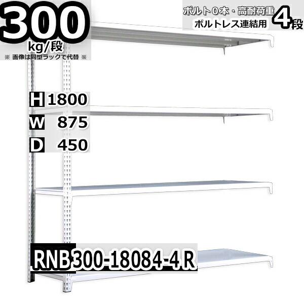 スチールラック 幅87×奥行45×高さ180cm 4段 耐荷重300kg/段 中量棚 業務用 ボルトレス W87×D45×H180cm連結用(支柱2本) スチール棚 収納 棚