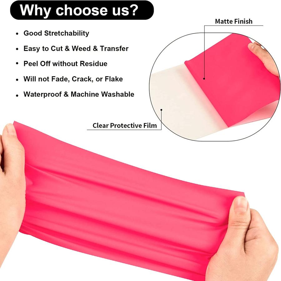 VINYL FROG Heat Transfer Vinyl Roll HTV Vinyl - 12inchx12ft Neon Pink Iron