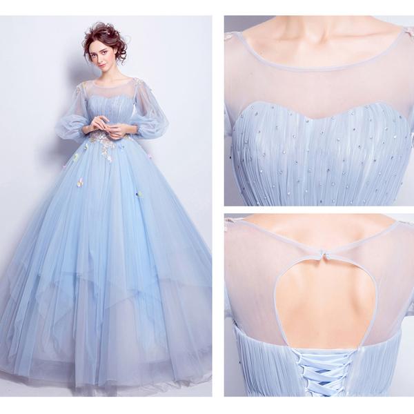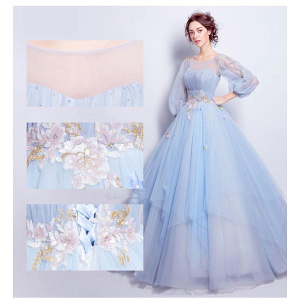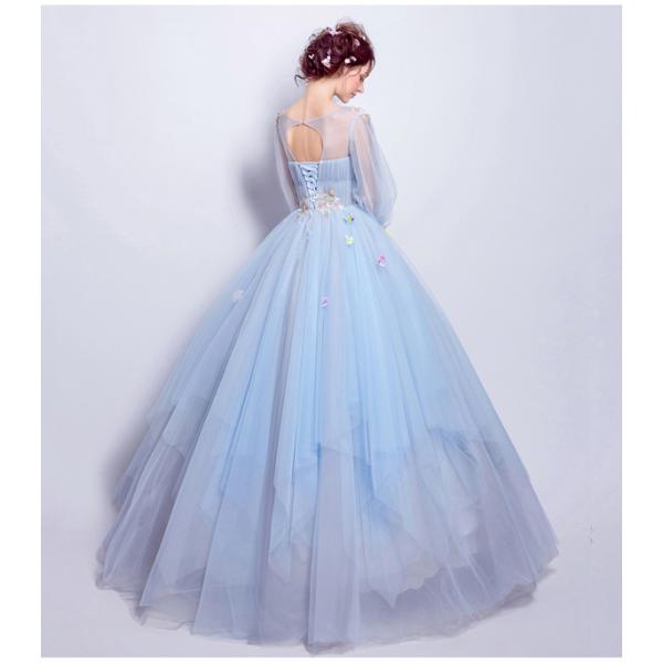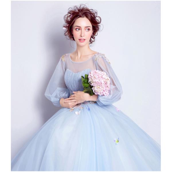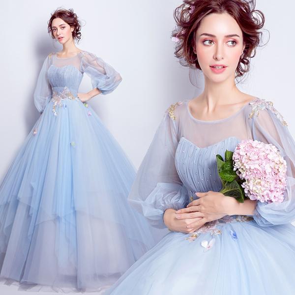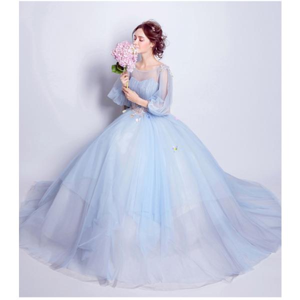 カラードレス ウェディングドレス ロング 二次会 花嫁 演奏会 ロングドレス パーティードレス プリンセスライン 撮影