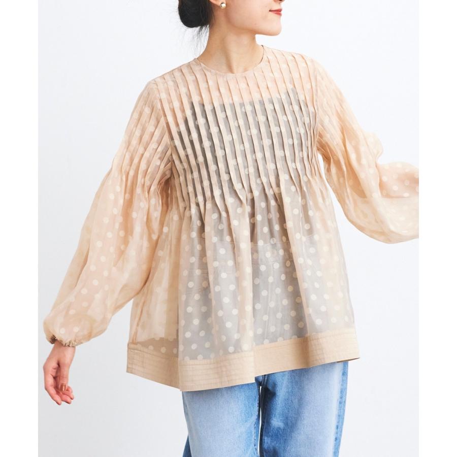 同色ドットのシースルー生地を使用し、袖は長袖に仕立てました。