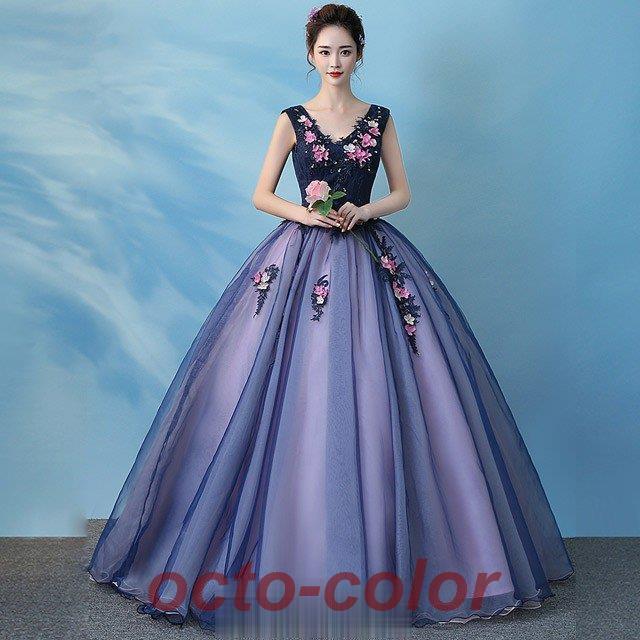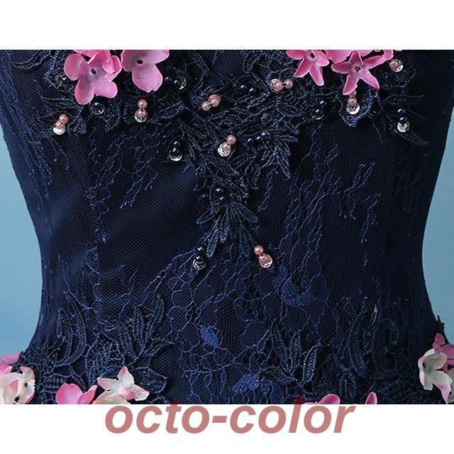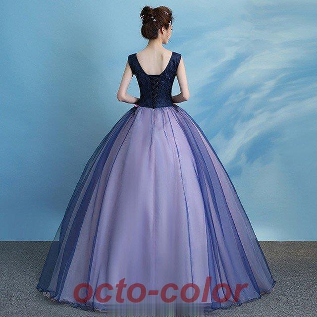 編み上げ ウェディングドレス レース 演奏会 結婚式 お洒落 ロングドレス Vネック ノースリーブ 花嫁 ドレス チュール 結婚式 贅沢 ネイビー