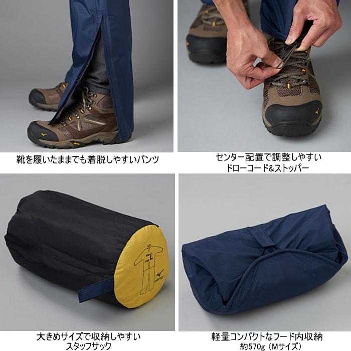 100回洗濯をしても水をはじく、耐久撥水加工の定番レインスーツです。生地の縫い目には特殊なシームテープ加工を施し、防水性を高めています。独自の3層構造のベルグテックEXを採用、ベタつきにくく強度に優れています。袖部分は動きやすいように、立体的な形状になっています。パンツは動きやすさと靴を履いたままでも着脱しやすいように、やや太めの設計になっています。また収納袋付なので、小さく折り畳んで持ち歩くことができます。・ベルグテックEX・100洗耐久撥水加工・耐水圧30,000mm以上、透湿性約16,000g/m2-24h・40dナイロンリップストップ3L・フルシーム・フード内簡易収納機能・フードを折り畳んで衿に収納できる仕様・収納袋付◆本体:ナイロン100%◆内衿切替:ポリエステル100%◆サイズ:44、62:M、L、XL25、40、71:S、M、L、XL、2XL、SB、MB、MBB◆重量:約 550g(Mサイズ)◆原産国:タイ、ベトナム、ミャンマー※ご購入の際に特定の原産国をご指定いただくことはできません。予めご了承ください。メーカー希望小売価格はメーカーサイトに基づいて掲載しています